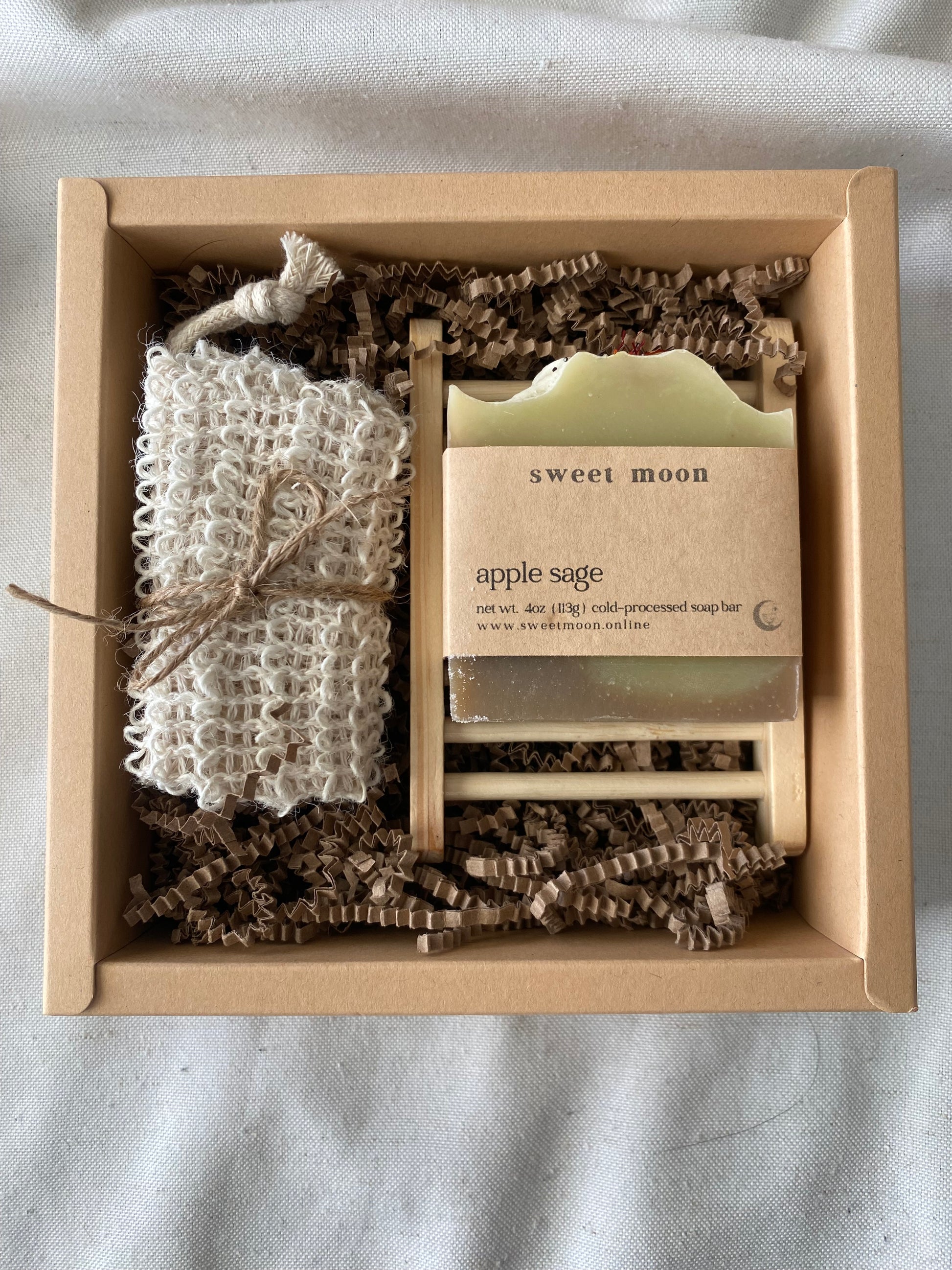 Handcrafted Soap Gift SetA thoughtful little bundle of everyday luxury—perfect for birthdays, thank-yous, holidays, or a self-care treat. Each set includes one handcrafted soap bar of your choice, a natural sisal exfoliating soap bag, and a bamboo soap dish, all beautifully packaged in a 6.5" x 6" x 2" kraft gift bag with a clear window for a charming, ready-to-give presentation. What’s Inside: • Handcrafted Soap Bar • Natural Sisal Soap Bag (5.5" x 3.5") • Bamboo Soap Dish (3.15" x 4.5") Why They’ll Love It: Perfect for anyone who appreciates natural bath essentials, sustainable materials, and a touch of homestead charm. |